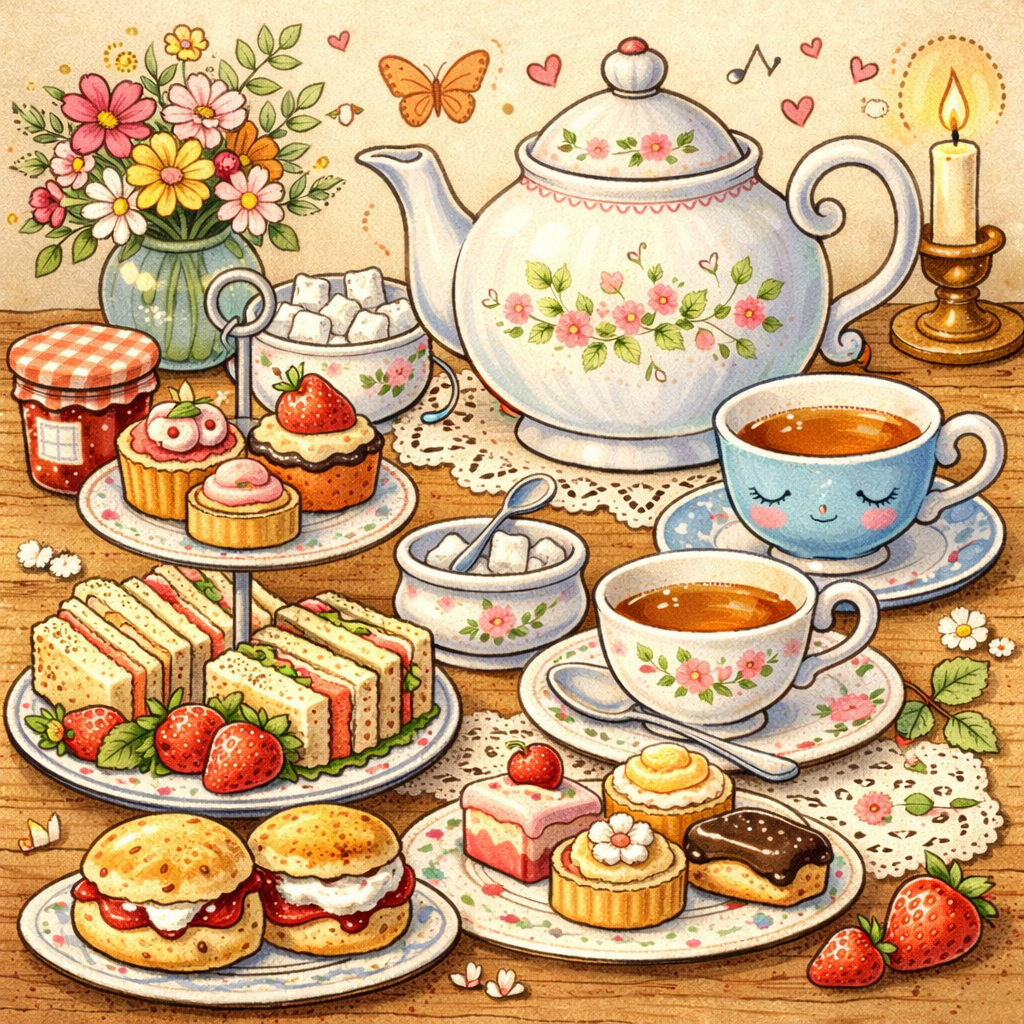 De High Tea start met het hartige onderdeel; een soepje, een puntje quiche en twee soorten sandwiches. Tijdens het tweede, zoete deel worden er scones en diverse zoete hapjes geserveerd. Met uiteraard een lekkere pot thee. (Eventueel is koffie mogelijk).